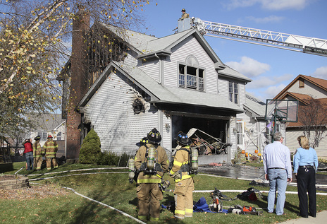 When the man ran upstairs, thinking a burglar was intruding, he saw the family room going up in flames. Meanwhile, a frightened Mr. B fled to an upstairs bedroom closet. The coach ran up to rescue the heroic dog, and the two escaped the house uninjured.